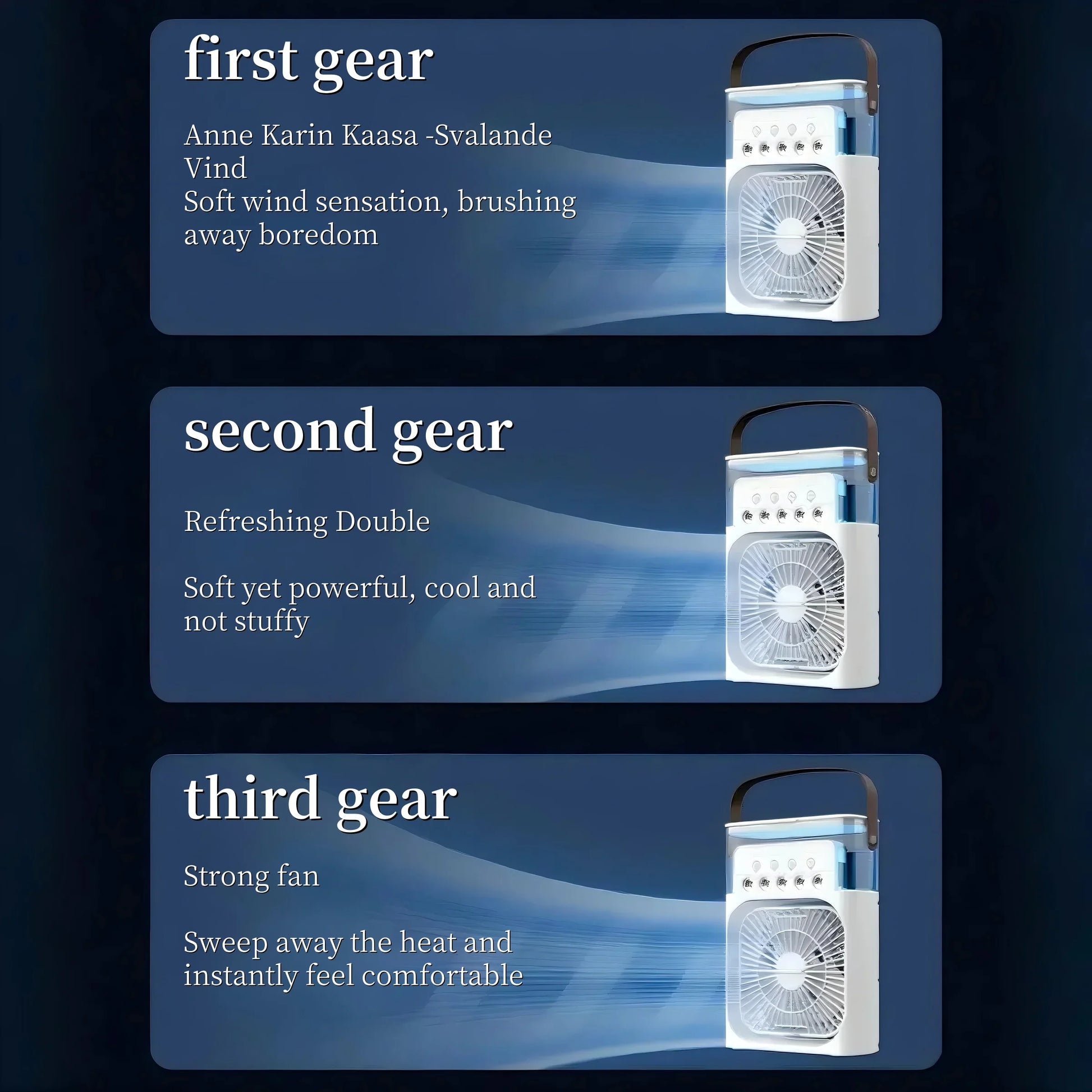 * PORTABLE DESIGN & LARGE CAPACITY: The portable design air cooler fan can be easily carried anywhere. In summer, this is the best choice for camping, you can easily camp, very suitable for family, office, outdoor picnic, etc. 600ML large water tank is filled with ice and water, it can spray
